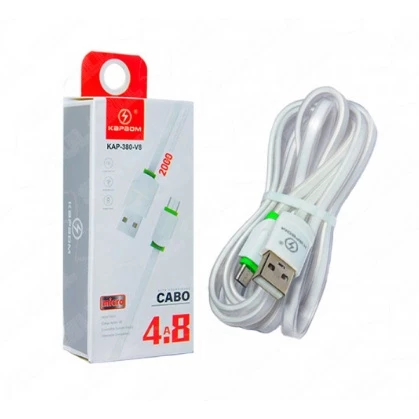 O Cabo de Dados Kapbom Kap-380 com comprimento de 2 metros é uma solução confiável e de alta qualidade para carregar e sincronizar seus dispositivos. Com corrente máxima de 4.8A, ele garante que seus dispositivos carreguem rapidamente e eficientemente. Além disso, o Cabo Kap-380 é feito com material resistente, proporcionando durabilidade e evitando danos devido a dobras ou torções. Com conector USB tipo-A para tipo-micro USB, ele é compatível com uma ampla variedade de dispositivos. Se você procura por um cabo de dados confiável e de alta qualidade, o Kapbom Kap-380 é a escolha certa. **Marca KAPBOM reconhecida nacionalmente Modelo: USB KAP-380- V8 Cabo de dados e de carregamento turbo -CARACTERÍSTICA DO PRODUTO: – Cabo c/ 2 metros – Saída: V8 – Carregamento turbo e seguro – Compatível com todas edições USB – Resistente, durável e longa vida útil – Total compatibilidade – Leve e fácil de transportar – Rápida sincronização